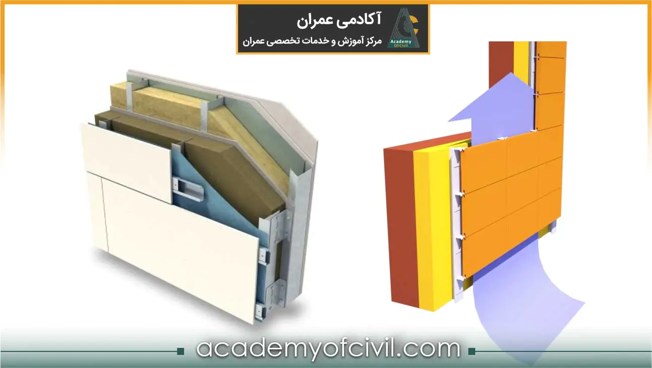 در سیستم نمای تهویهشونده (Rainscreen / Ventilated Facade)، یک فاصله هوایی بین نمای بیرونی و بدنه اصلی ساختمان ایجاد شده که باعث گردش هوا و خروج رطوبت میشود. نمای تهویهشونده موجب افزایش دوام مصالح نما و بهبود عملکرد حرارتی ساختمان میشود و در بسیاری از نماهای مدرن اروپایی مورد استفاده قرار میگیرد.