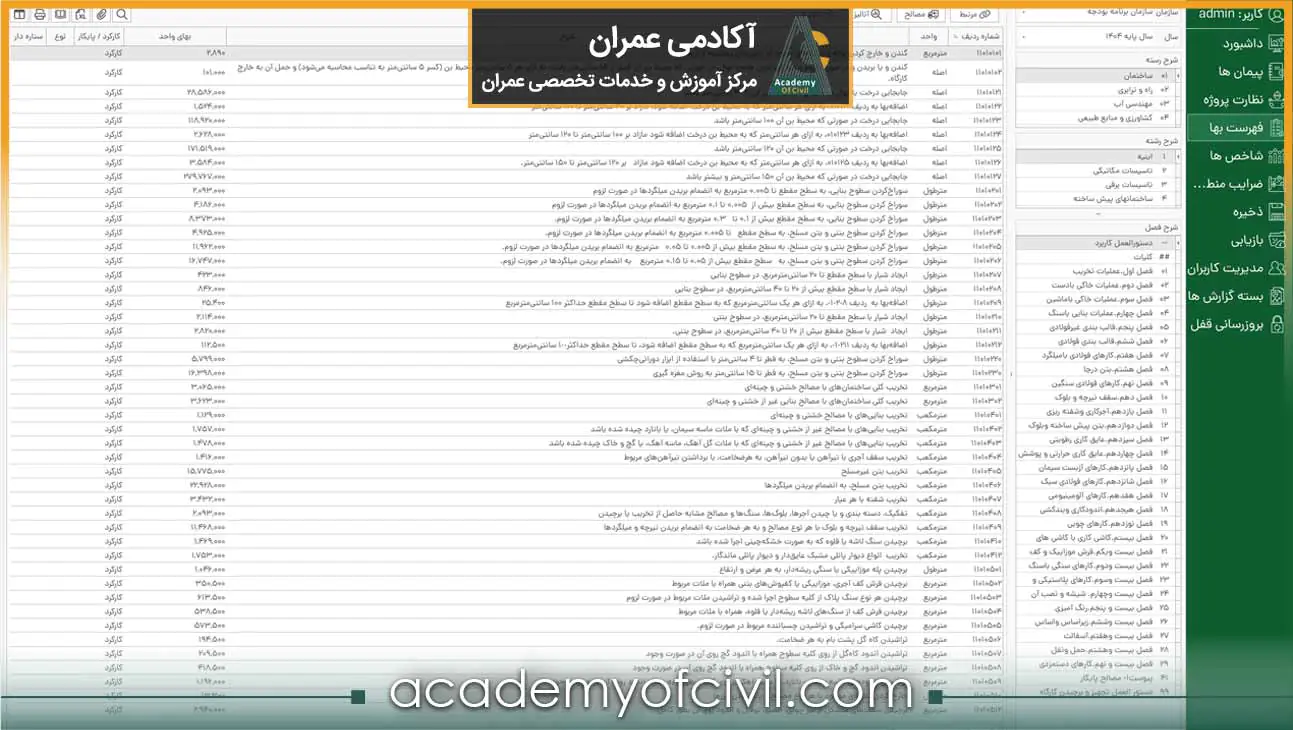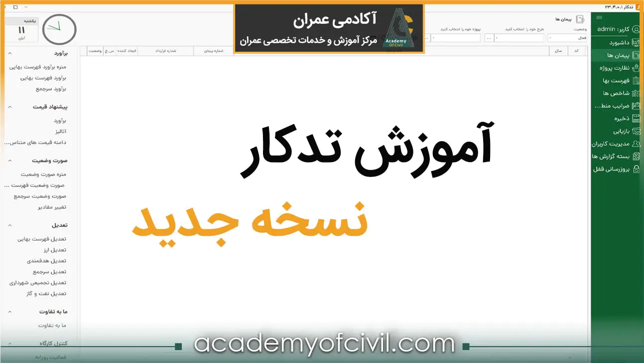 • آموزش کامل مباحث آنالیز بها، تعدیل و برآورد در تدکار